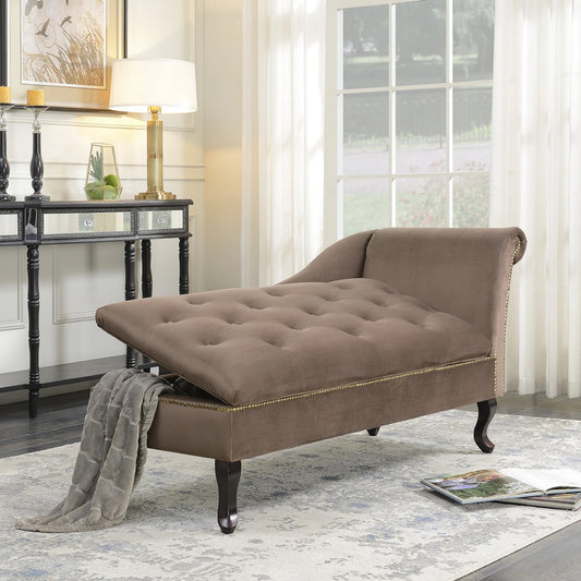 Chaise Lounge Tufted Cushion and Nail-Head Trim Living Room Chaise