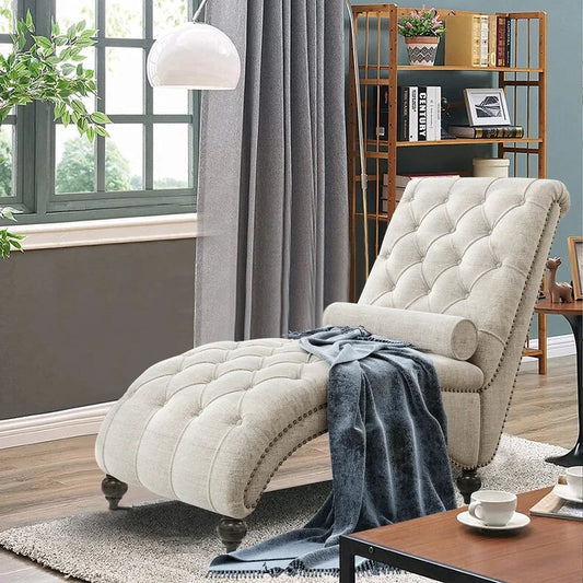 Lounge Chair: Wenya Tufted Rolled Arms Chaise Lounge