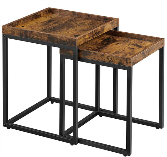 Nest Of Tables: 2 Side Tables, End Tables with Raised Edges, Coffee Tables for Living Room, Industrial Rustic Brown and Black