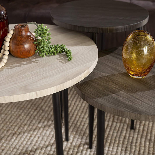 Nest Of Tables: 3 Piece Modern Round Nesting Coffee Table Set Living Room Accent Ottoman Storage Shelf, Set of 3