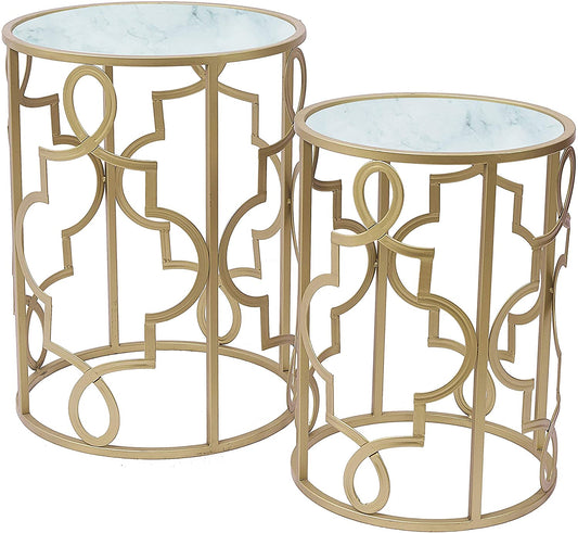 These tables are made of marble and have a wood frame. Table Set of 2, Glass End Table for Living Room Side Table Round Modern Coffee Table is a waterproof because it is made with glass.