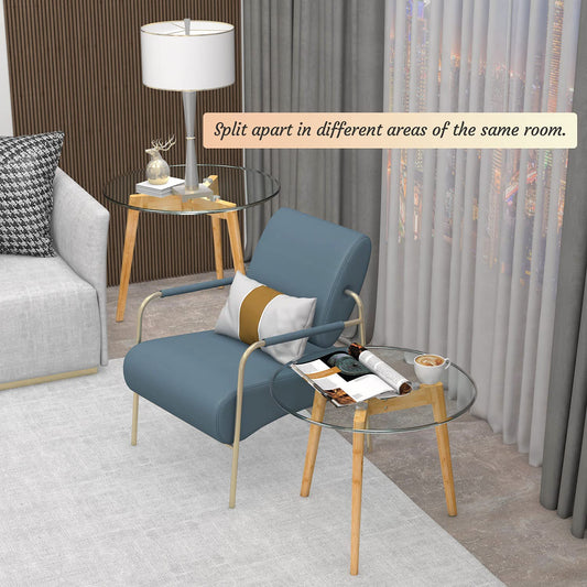 Nest Of Tables: Table Set of 2, Glass End Table for Living Room Side Table Round Modern Coffee Table