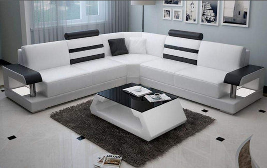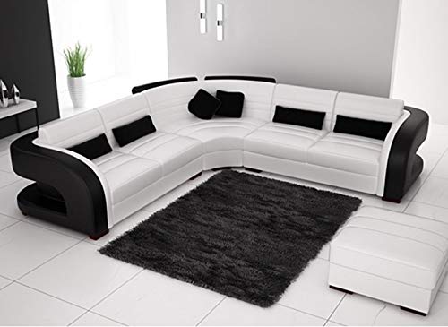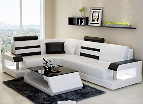 L Shape Sofa Set:- Luxury Hardwood Modern Leatherette Sofa Set (White and Black)