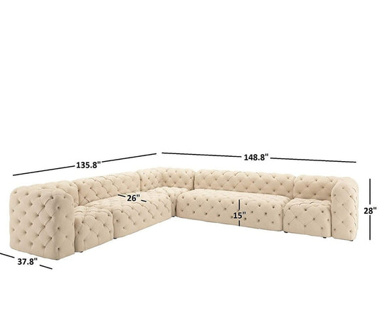 L Shape Sofa Set:-Chesterfield Hardwood Leatherette Luxury Furniture Sofa Set, (Beige)