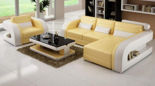 L Shape Sofa Set:- Luxury Modern Leatherette Sofa Set (Yellow and White)