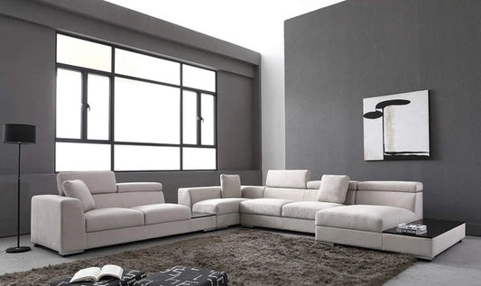 L Shape Sofa Set:- Modern Hardwood Fabric Sofa Set (Cream & Grey)