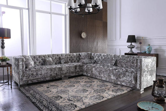 L Shape Sofa Set:- Modern Crushed Velvet Sectional Fabric Sofa Set (Grey)