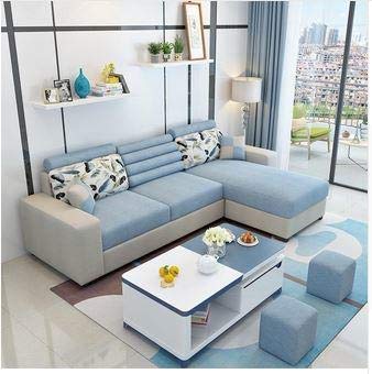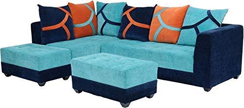 L Shape Sofa Set:- Wood Fabric Sofa Set, Standard Size, (Blue)
