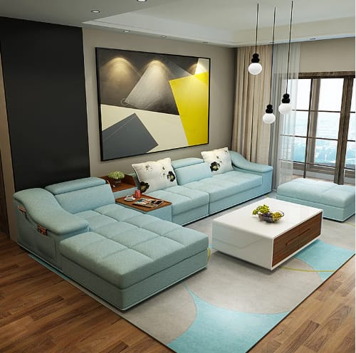 Modern l shape sofa sets include a TV table and coffee table. Modern L shape sofa set price is high because this sofa is modern with new colour. Different types of price in modern L shape sofa set.