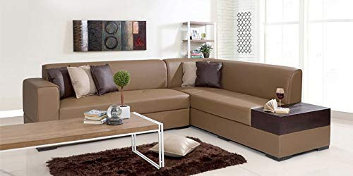 L Shape Sofa Set:- Sectional Leatherette Sofa Set (Tan & Brown)