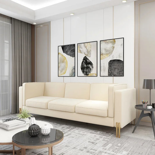 4 Seater Sofa Set : 96'' Velvet Square Arm Sofa