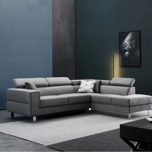 Designer Sofa Set:- Moore L Shape 5 Seater Fabric Luxury Furniture Sofa Set (Grey)