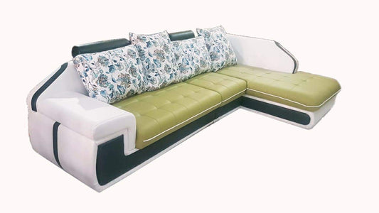L Shape Sofa Set: -Hardwood Roland Sectional Leatherette Sofa Set with 1 Puffy (Pear Green and White)