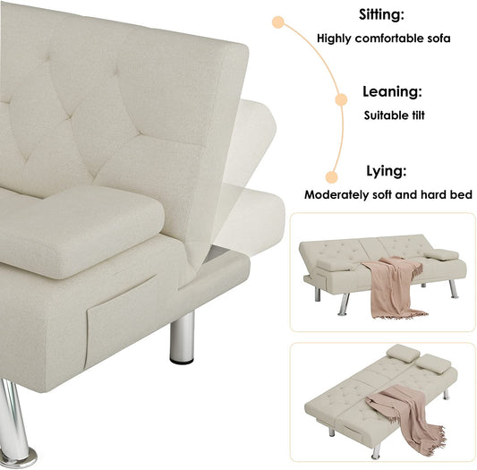 Sofa Cum Beds: Convertible Linen Fabric Futon Sofa Furniture for Living Room