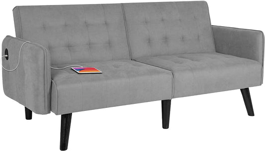 Sofa Cum Beds: Pillows Velvet Futon, Gray