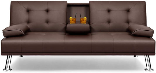 Sofa Cum Beds: Lounge Futon Couch for Living Room with 2 Cup Holders with Armrest
