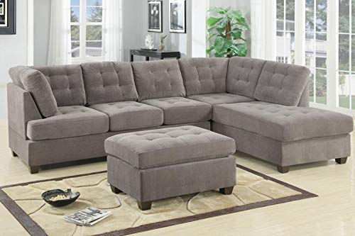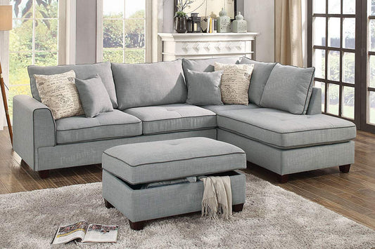 L Shape Sofa Set:- Lounger Fabric Sofa Set Standard Size (Light Grey)