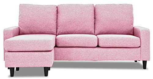 L Shape Sofa Set:- Wood, Foam And Fabric Sofa Set With Lounger (Pink)