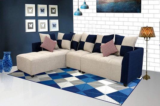 L Shape Sofa Set: L Shaped Sofa with Ottoman Fabric (Beige)