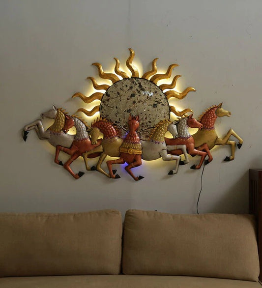 Wall Art : Iron 7 Running Horse Wall Art With LED In Metal