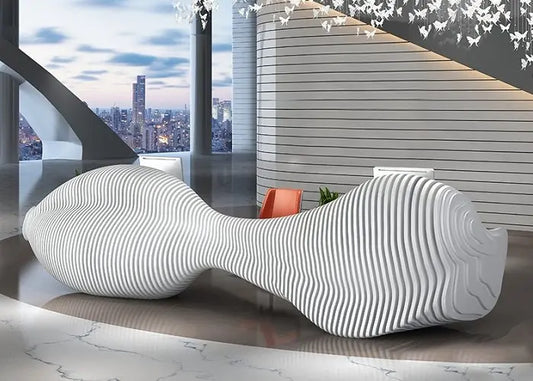 Reception Table: Fish Shape Design Wood Desk