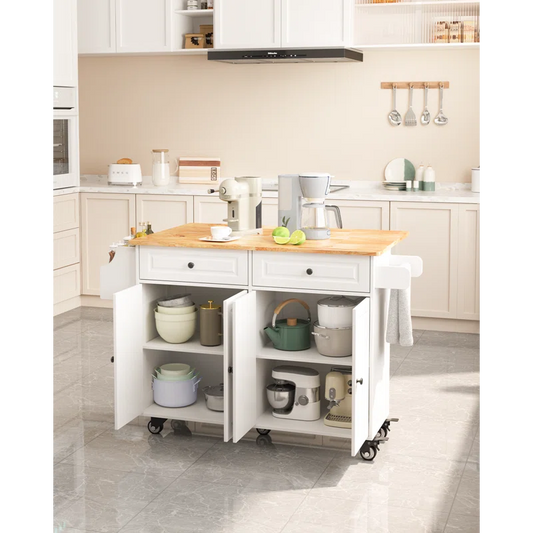 Kitchen Island Table: Expandable Countertop, Storage, and Locking Wheels