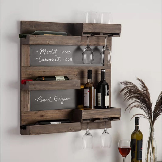Wine Racks : 5 Bottle Wall Mounted Wine Bottle & Glass Rack in Dark Mahogany
