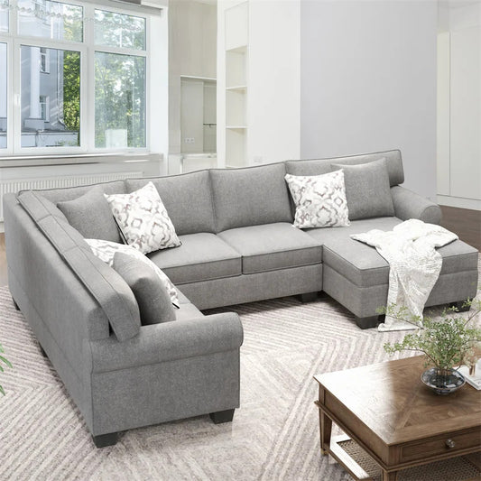 U Shape Sofa Set: 113" Wide Symmetrical Corner Sectional 7 Seater Sofa