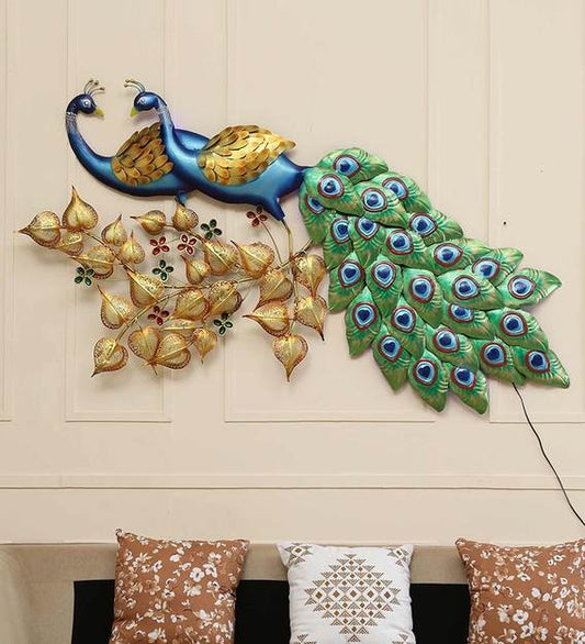 Wall Art : Iron Peocock Wall Decor With LED In Blue