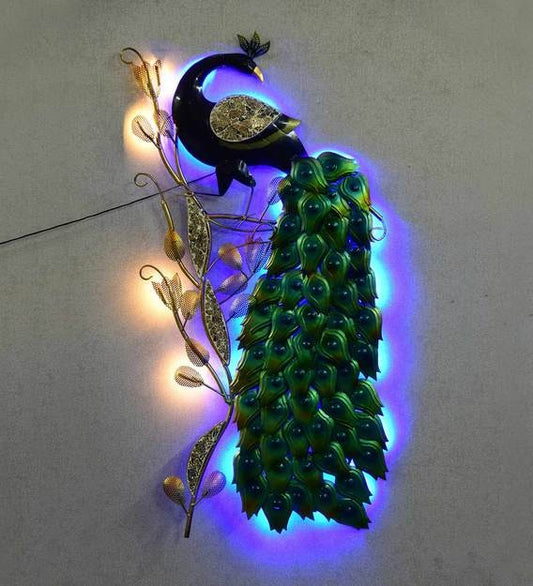 Wall Art : Iron Peocock Wall Art With LED In Green