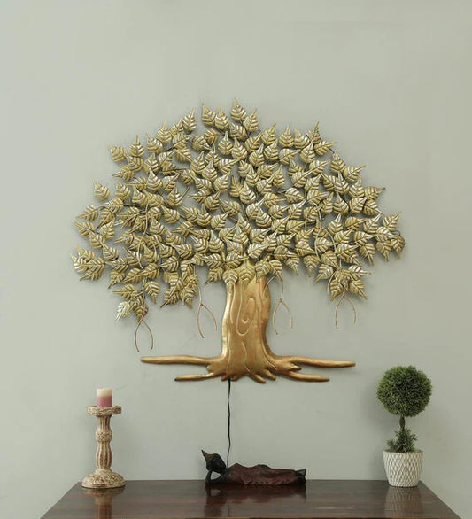 Wall Art : Iron Piple Tree Wall Art With LED In Gold