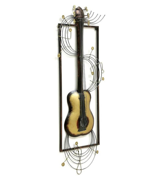 Wall Art : Wrought Iron Framed Guiter Wall Art In Gold