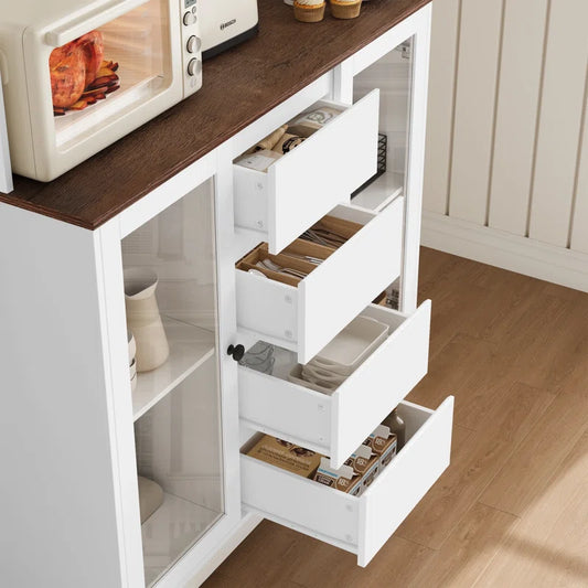 Kitchen Racks: Multi-Layer Kitchen Organizer with Casters and Glass Fronts