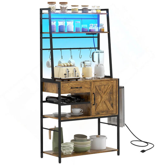 Kitchen Racks: 71" Storage Cabinet with Hutch, Microwave Shelf, Hooks
