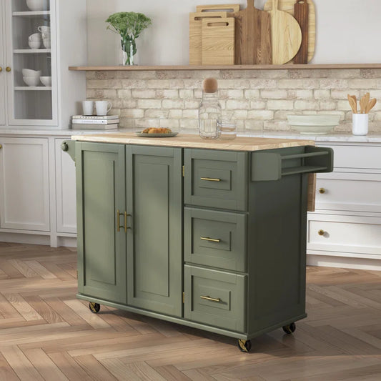 Kitchen Island Table: 54-Inch Wide Multi-Storage Cart with Rubberwood Top