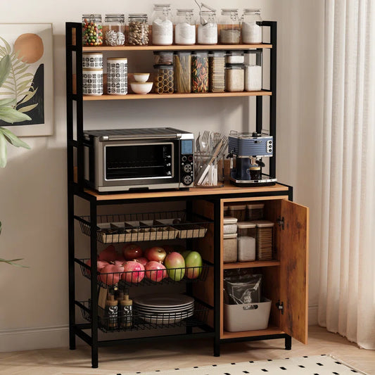 Kitchen Rack: Microwave Shelf Rack and Kitchen Bakers Rack with 3 Metal Baskets and Storage Cabinet