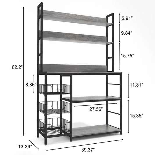 Kitchen Racks: Towerside 5-Tier Baker's Rack Featuring Adjustable Shelves, Spacious Desktop, and Cable Management System