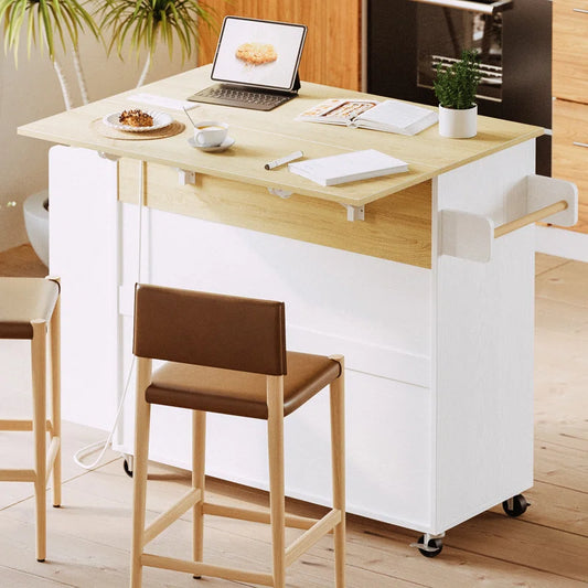 Kitchen Island Table: 47.25'' Wide Drop leaf extends Also with a spice rack and a towel bar