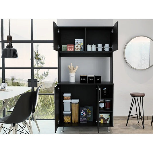 Kitchen Cupboard: 33" Black Finish Kitchen Cabinet And Pantry