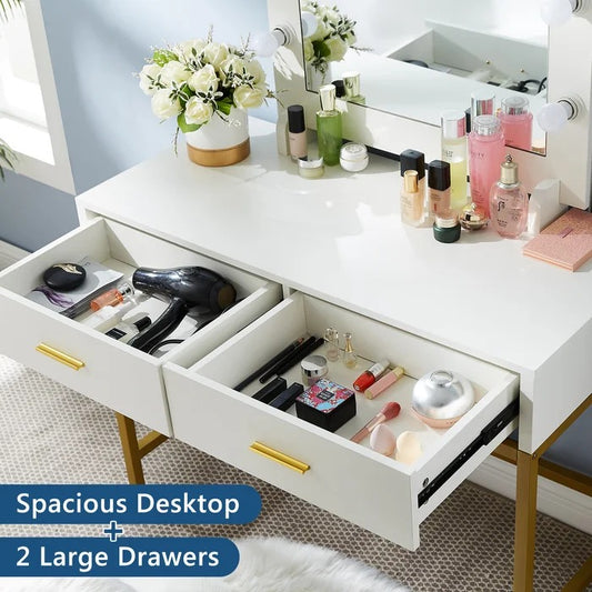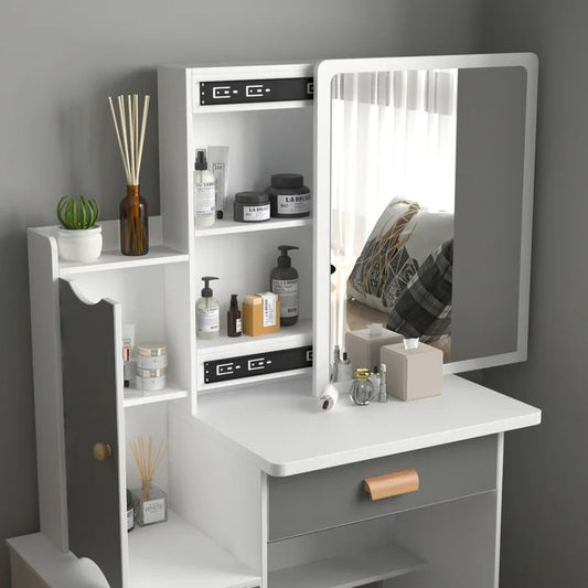 Dressing Table: Makeup Vanity Set with Stool and Mirror