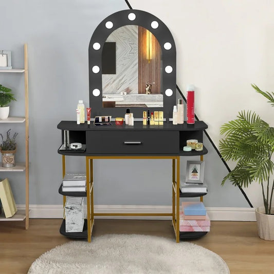 Dressing Table: Vanity Mirror With Lights And Table Set