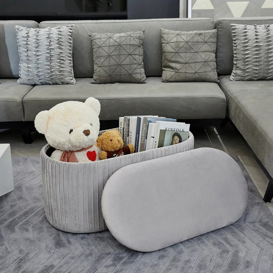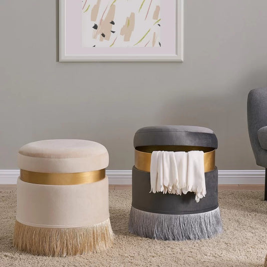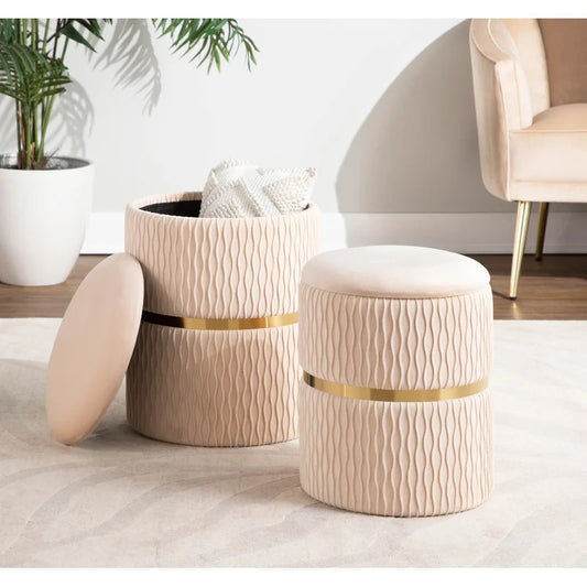 Storage Ottomans: Velvet Round Storage Ottoman with Storage