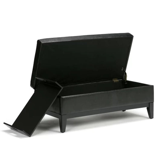 Storage Ottomans: 42.1'' Wide Faux Leather Tufted Rectangle Storage Ottoman with Storage
