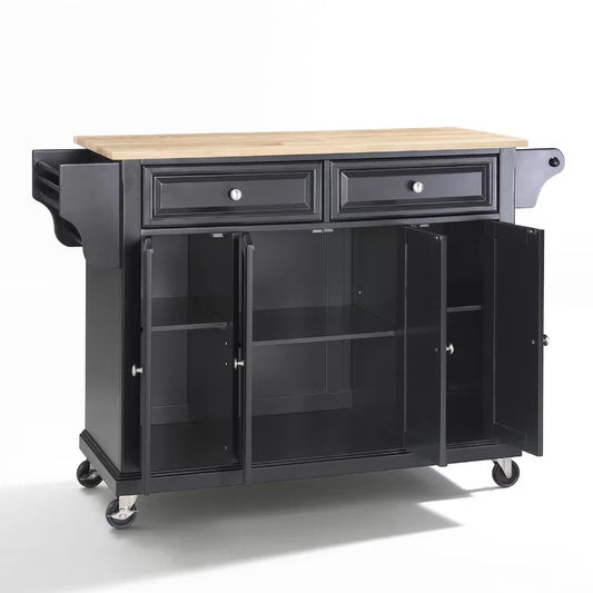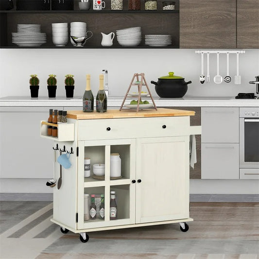 Kitchen Island: 51.5'' Wide Rolling Kitchen Island Table with Solid Wood Top