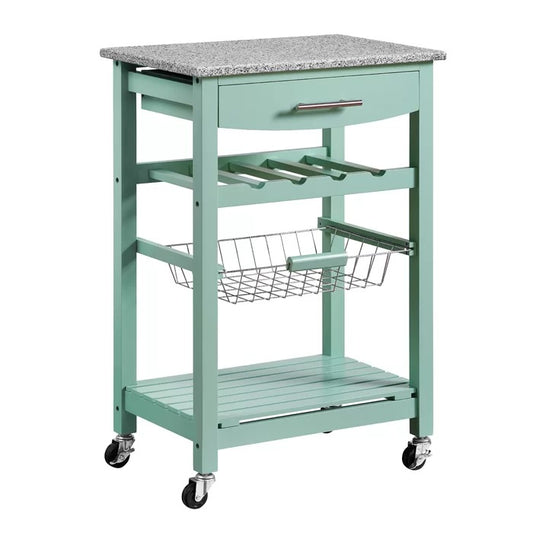 Kitchen Island Table: 22.88'' Wide Rolling Kitchen Cart with Granite Top