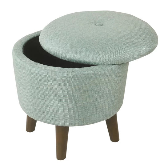 Storage Ottomans: 18'' Wide Tufted Round Footstool with Storage