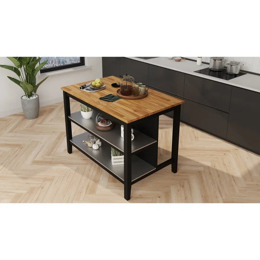Kitchen Island Table: 49.6'' Wide Kitchen Island with Solid Wood Top
