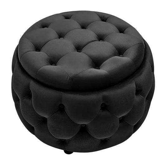 Storage Ottomans: 28'' Wide Velvet Tufted Round Storage Ottoman with Storage