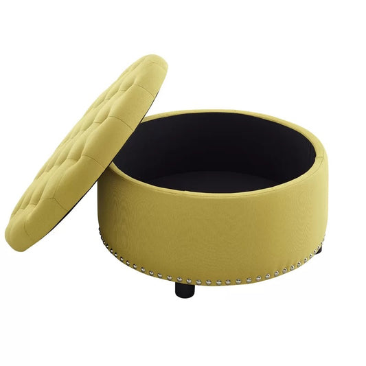 Storage Ottomans: 28'' Wide Tufted Round Storage Ottoman with Storage
