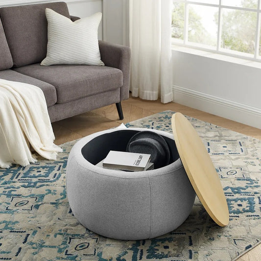Storage Ottomans: 25.5'' Wide Round Storage Ottoman with Storage